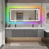 Elevate your bathroom or vanity area with our sophisticated Frameless LED Mirror. This mirror, designed without a frame, features a 5mm copper-free mirror surface, providing a sleek and modern look. Its advanced features include brightness adjustment, LED 2835 with color temperature ranging from 3000-6000K for the front light, and a stunning RGB backlight for an ambient effect.